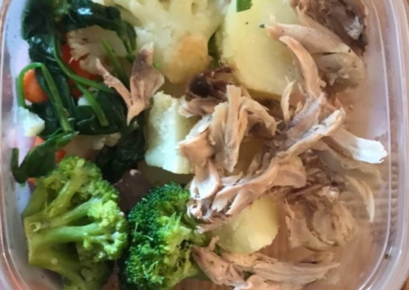 Steps to make to make Pollo, papa y vegetales para almuerzo de bebé o adulto muy sano