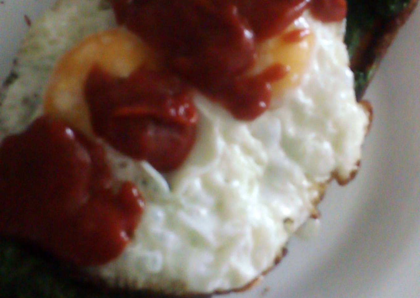- Para armar el plato se ponen las tostadas, luego la crema de espinaca caliente, luego los huevos fritos y encima la salsa de tomate.