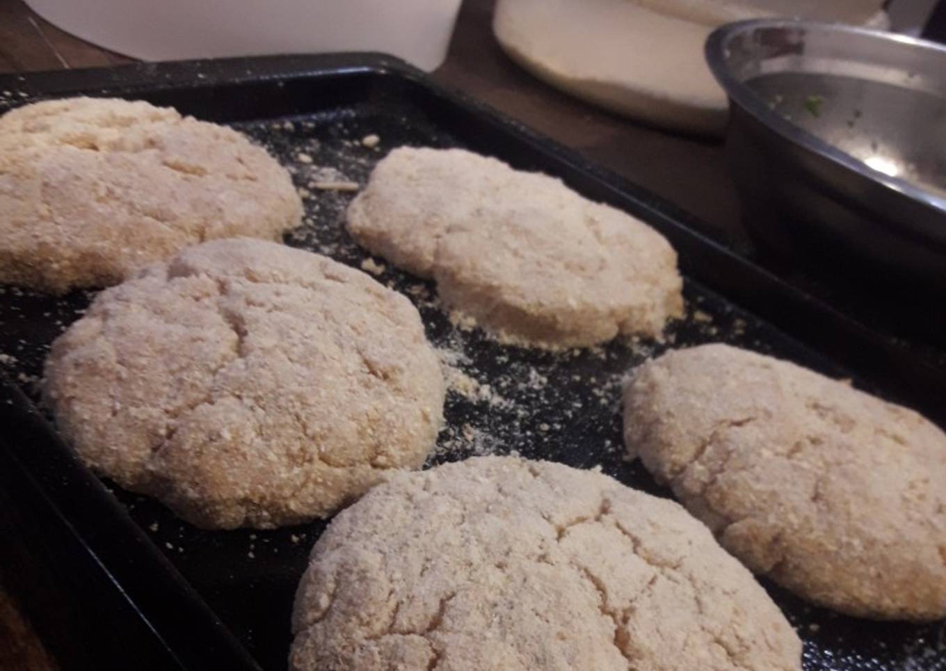 - Batimos los huevos y le agregamos los condimentos a gusto. Damos forma de hamburguesa a un poco de mezcla que tomamos y la pasamos por el pan rallado, luego por el huevo y de nuevo por pan rallado (para que queden más firmes).