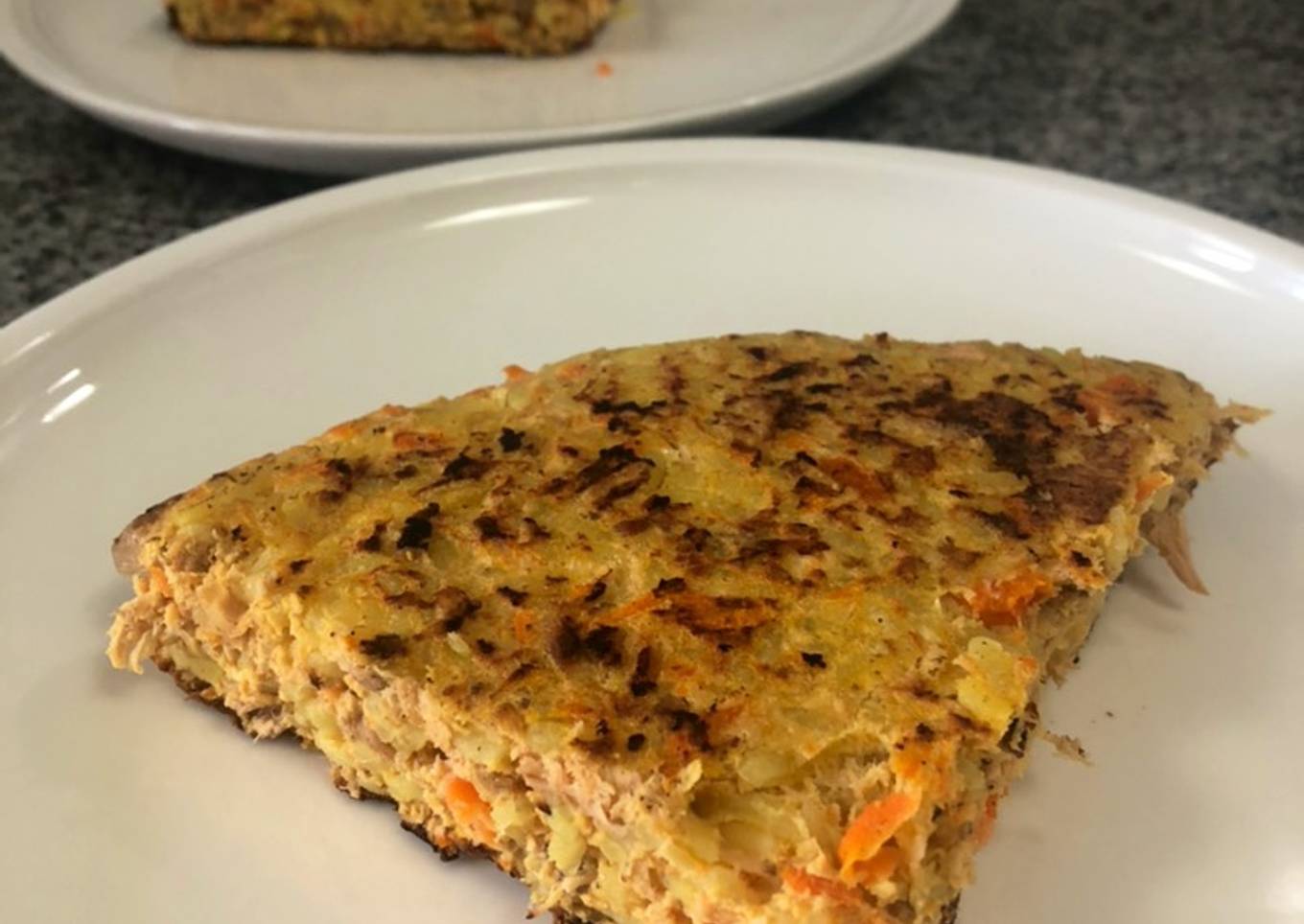 Tortilla de pollo, arroz y zanahoria