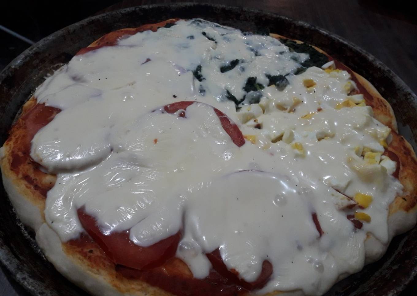 - Separar en 4 bollos (o los que deseen según el grosor de la pizza que prefieran), estirar en pizzeras aceitadas, agregarles la salsa y dejar levar nuevamente.