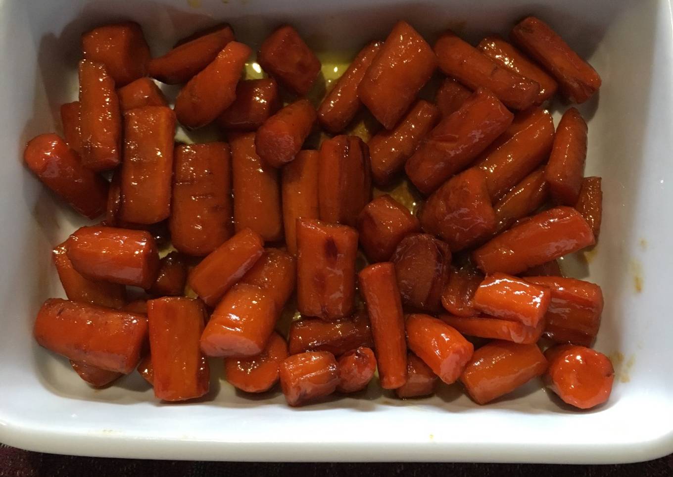 - En un sartén colocar las zanahorias que has cortado en bastón mediano después de desinfectar y pelar. Polvorea 3 cdas de azúcar parda y 1/2 taza de aguada piña o natural.